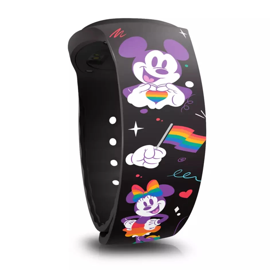 MagicBand+ lets you engage with Disney moments like never before as it reacts to select park interactions with lighting effects and gesture recognition. This MagicBand+ design features Mickey Mouse and Minnie Mouse and Disney Pride Collection logo in vibrant rainbow colors to be worn with pride.