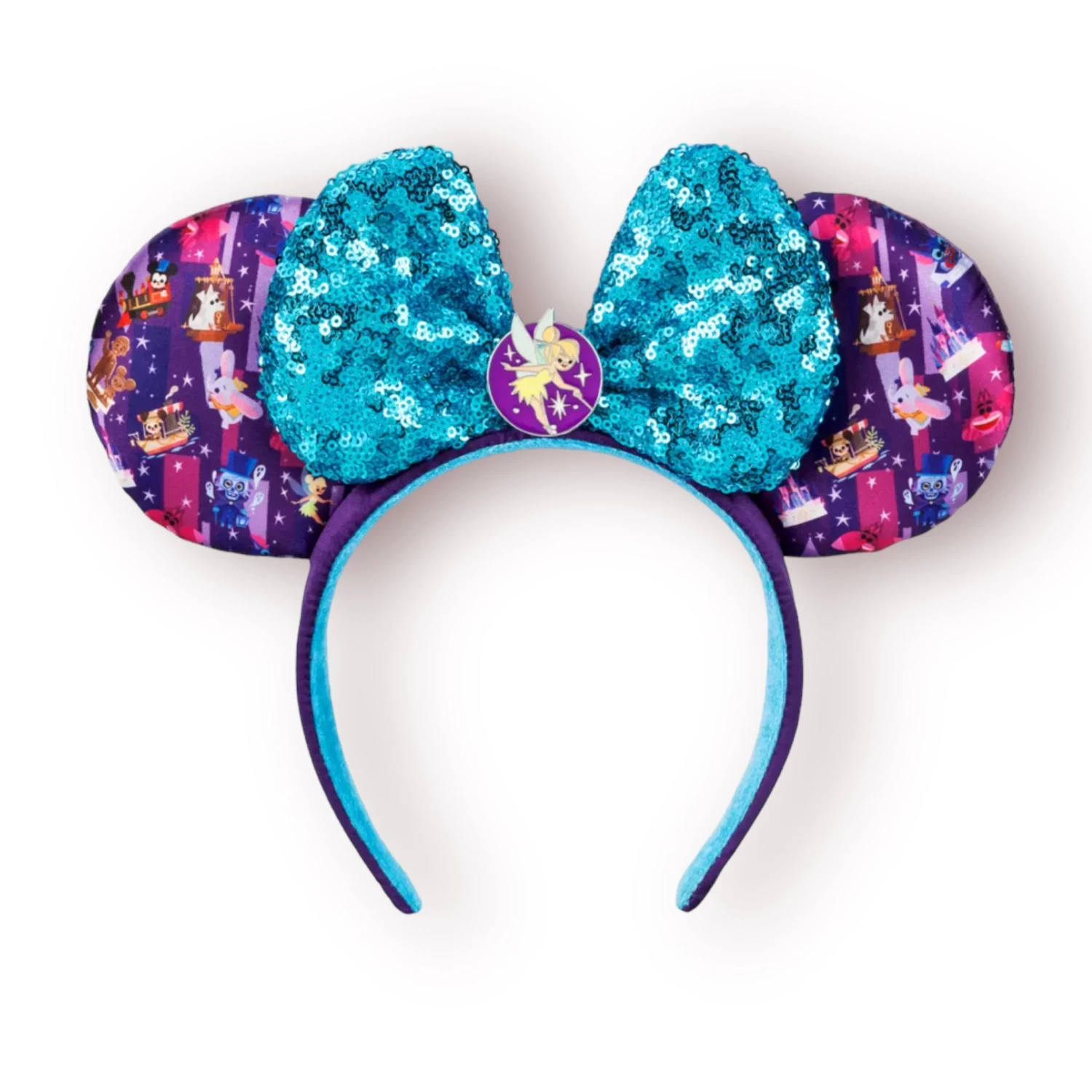 Created by artist Joe Chou, this ear headband’s colorful design is inspired by popular Disney Parks landmarks, attractions and characters. The electric blue sequin bow features an enamel charm with Tinker Bell sprinkling a little pixie dust wherever you go.