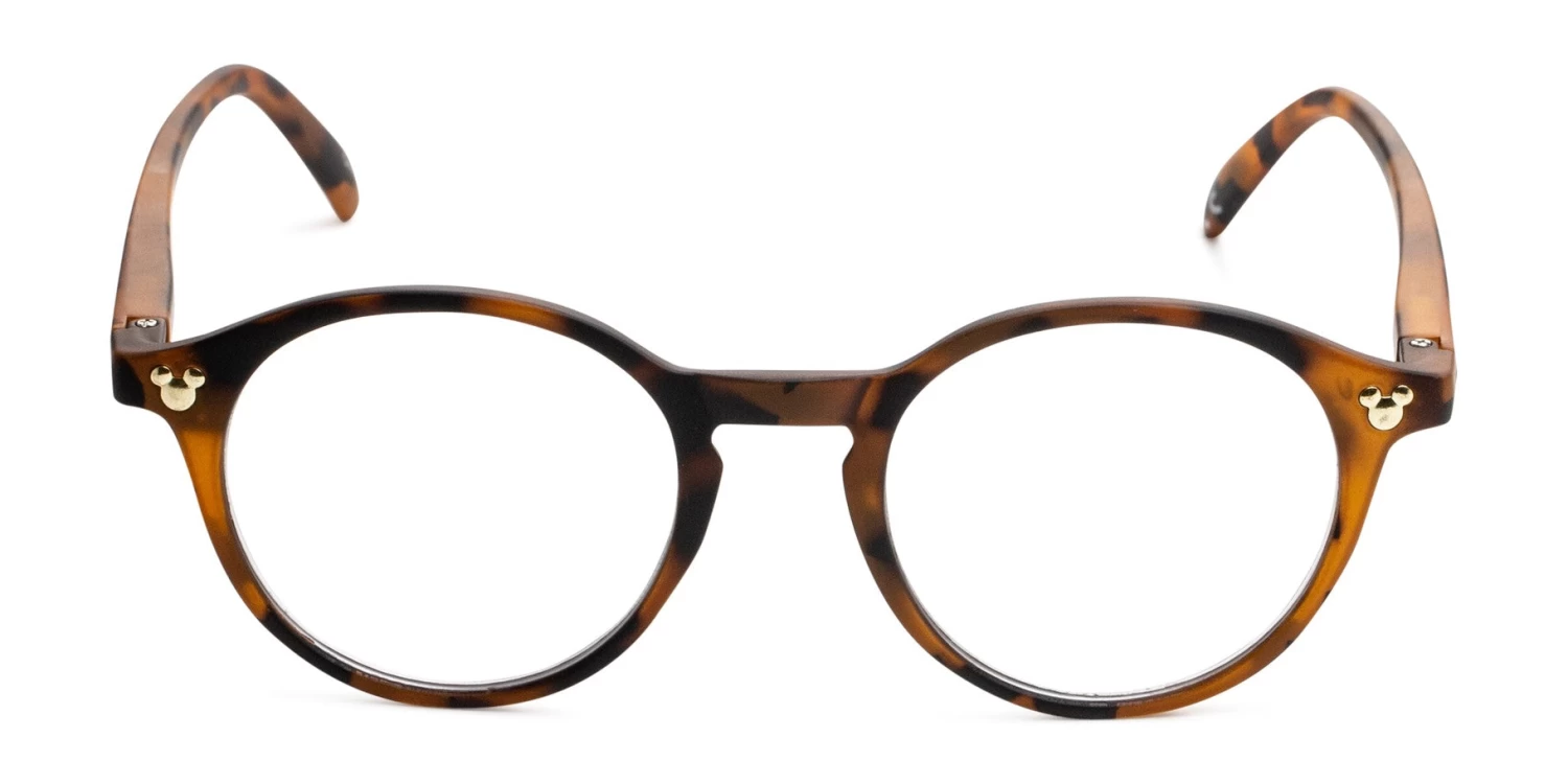 Never stop viewing the world with curiosity while wearing The Wonder. This round frame with Mickey-shaped metal rivets is as classic as the True Original himself. Delight in the simplicity of a brown tortoise frame or surprise in navy with pops of red and a Minnie Mouse bow print on the inner temples. Comfortable spring hinges and scratch-resistant lenses allow you to focus on the fun ahead. A matching soft microfiber pouch is included with every pair.